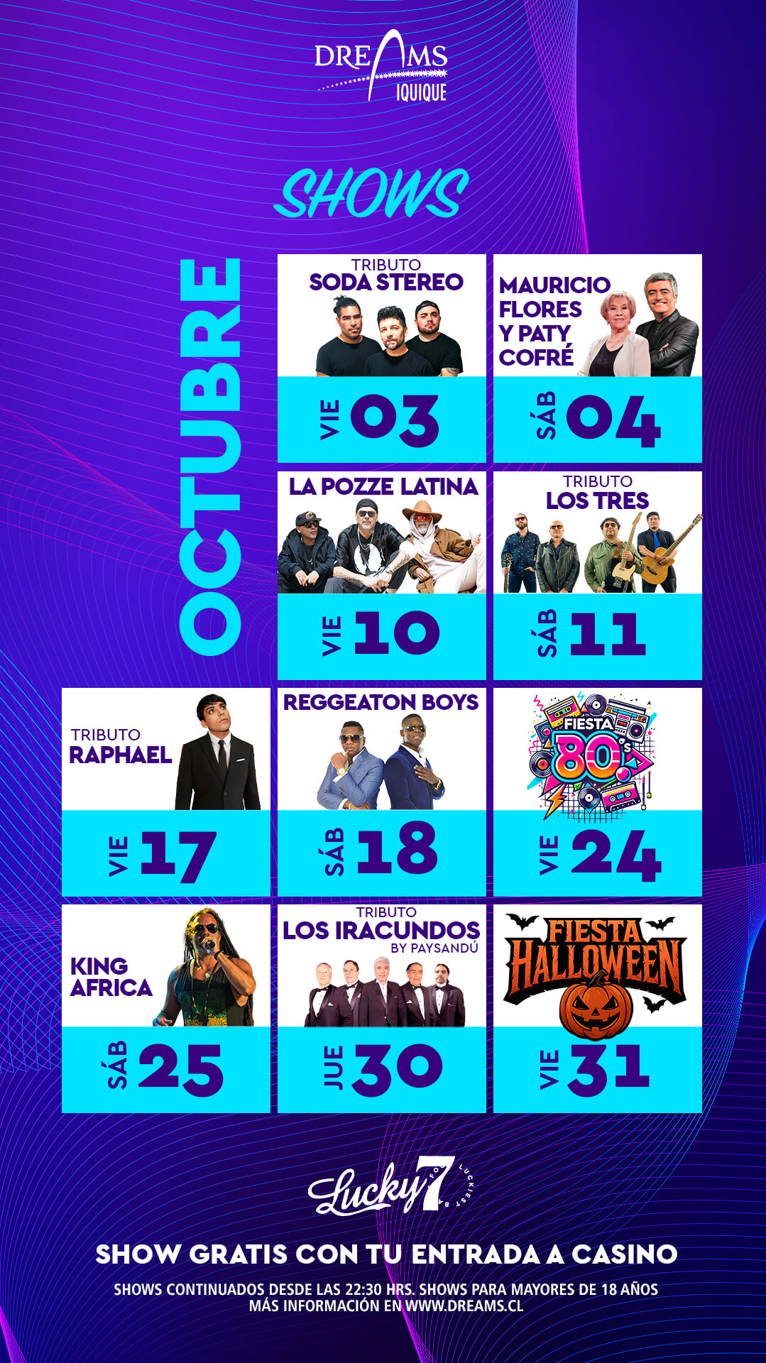 Recuerda seguirnos en Facebook @DreamsIquique y en Instagram @DreamsIquique para estar siempre al día con todos nuestros sorteos, shows y novedades.