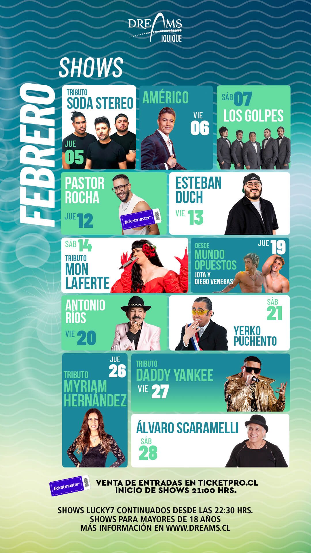 Recuerda seguirnos en Facebook @DreamsIquique y en Instagram @DreamsIquique para estar siempre al día con todos nuestros sorteos, shows y novedades.